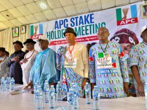 Leaders and other stakeholders of the All Progressives Congress (APC) in Delta Central Senatorial District, on Sunday, converged at the Petroleum Training Institute (PTI), Effurun, for a high-level strategic meeting and pledged unalloyed loyalty to President Bola Tinubu and Governor Sheriff Oborevwori.