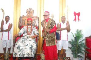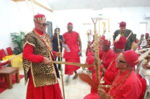 Former Majority Leader of the Delta State House of Assembly, Hon. Chief Krees Njiokwuemeni, a renowned politician, was among the ranking chiefs who paid homage to His Royal Majesty, Agbogidi Obi Nduka, JP, MNSE, Obi of Issele-Uku.