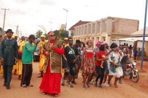 The celebration involved cultural exhibitions, traditional music, and the Obi participating in various ceremonies with his chiefs paying traditional homage to him.