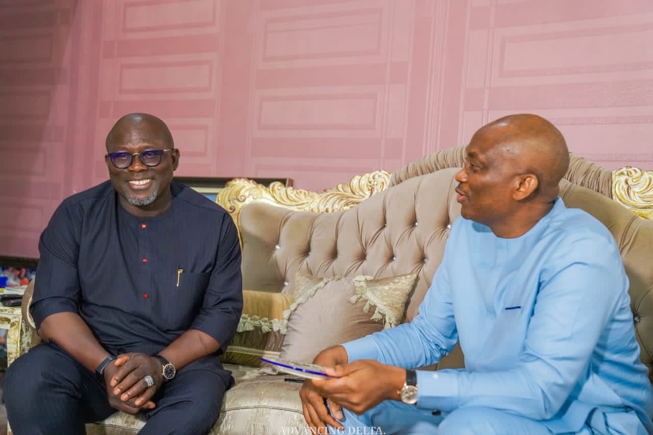Earlier today, Friday, March 24th, 2023, Minority Leader of the House of Representatives, Rt. Hon. Ndudi Elumelu, paid the Delta State Governor-Elect, Rt Hon Sheriff Oborevwori a Congratulatory visit in his official residence in Asaba on his election at the March 18th, 2023, Governorship Election.