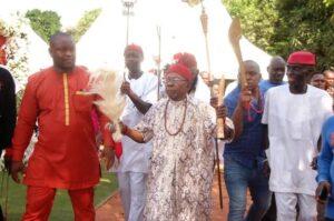 High Chiefs of the community led by Chief Lawrence Njiokwu, the Iyase of Issele-Mkpitime were exceptional as they performed their traditional allegiance to the king in symbolic loyalty to Monarch and the throne.