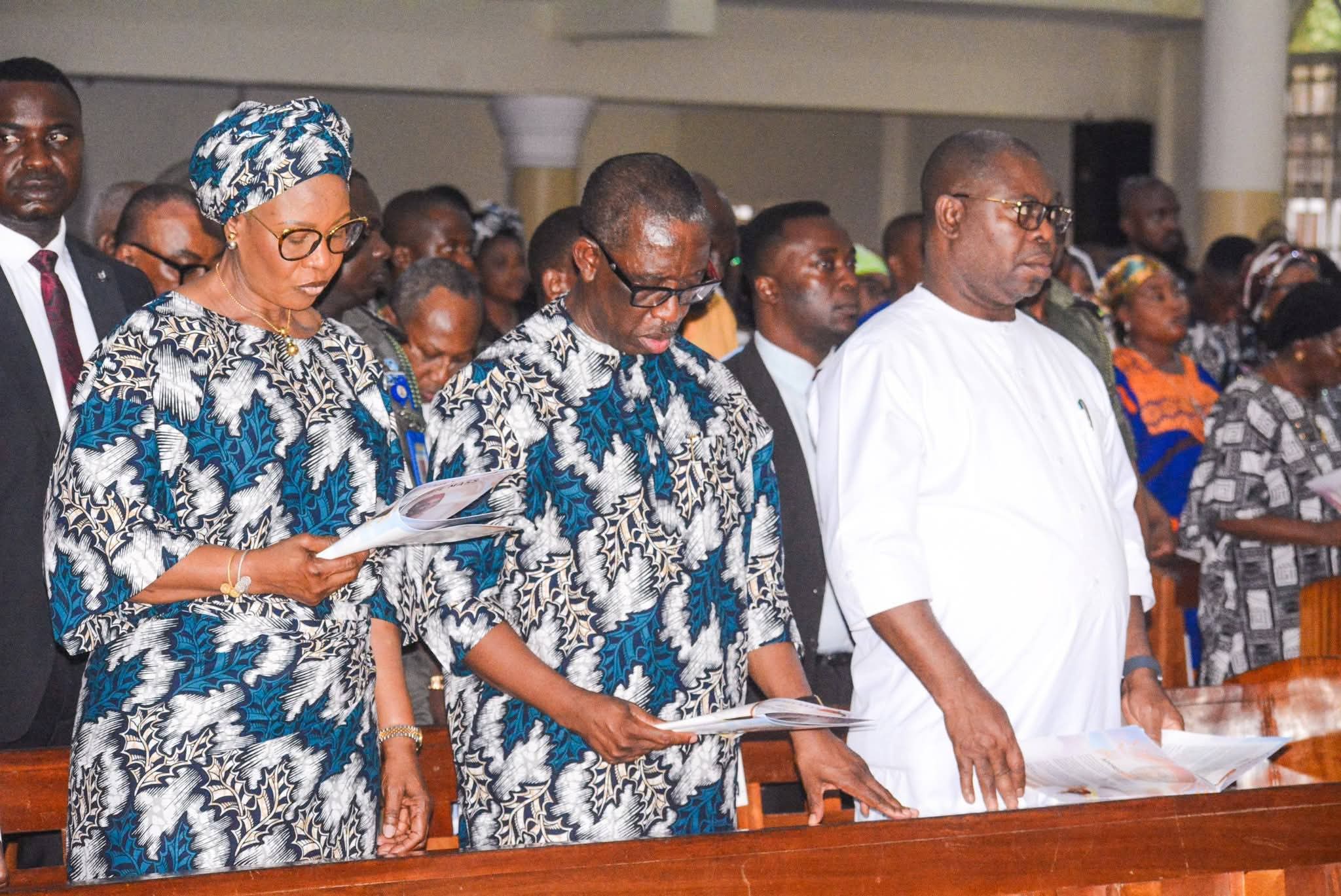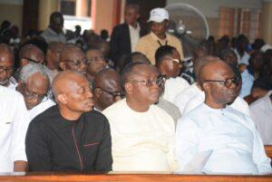 The Delta State Deputy Governor, Sir Monday Onyeme, Secretary to the State Government, Dr. Kingsley Emu, among other top government functionaries, and politicians on Thursday attended the Vigil Mass in honour of late Senator Peter Nwaoboshi.