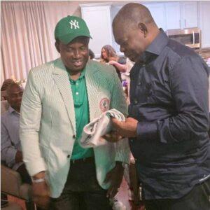 Sir Onyeme was presented with a token gift by Chief Paul Okoku, a member of the Nigerian National Soccer team, the Super Eagles 1984 African Cup of Nations Silver winning squad.