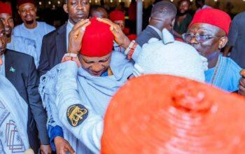 Governor Sheriff Oborevwori was also adorned with the traditional Okwa-Ocha native attire as a symbol of great honour and deep cultural respect.