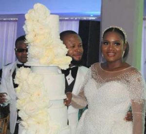 Highpoint at the reception which was hosted by a well-known Master of Ceremonies, Deacon Famous was the ceremonial cutting of the Wedding Cake by the Couple, Mr. and Mrs John Isiakpona. The Cake was beautifully designed by Power Vera.