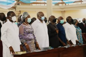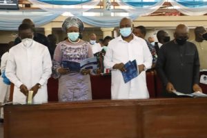 Gov. Okowa, the Wife and other leaders of the State during the Thanksgiving Service.